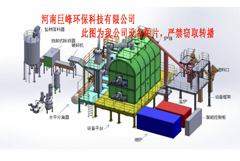 無氧裂解系統性中產生的可燃氣與破碎分選產生的廢氣進行互補,在燃燒室中充分燃燒,達到廢氣相互燃燒和充分利用,使燃燒后的尾氣處理比較簡單。